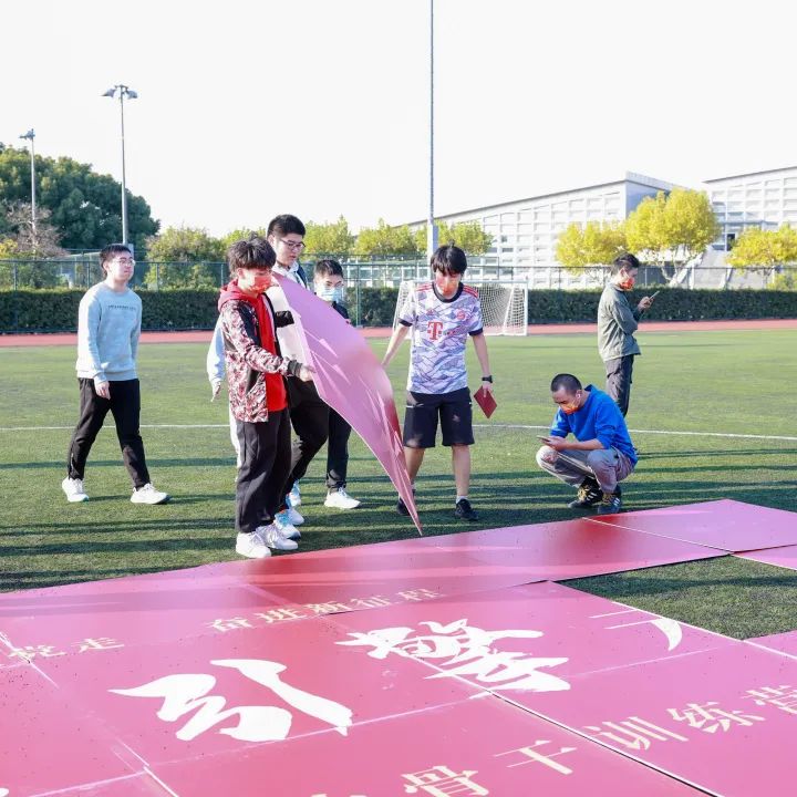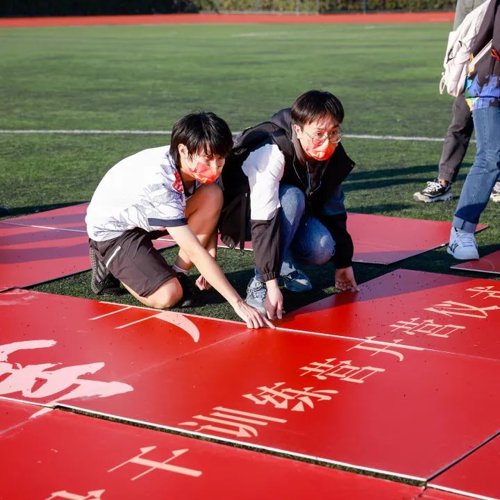 唐志宇老师、曹静老师为学生骨干代表授旗。