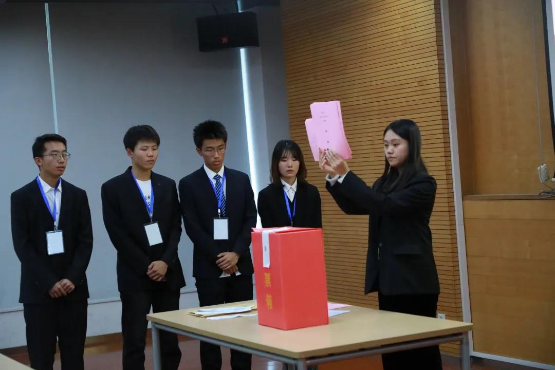 即时足球比分 第二十届学生会主席团候选人曹海泽、邱法衡、孙涵枫、黄守政进行竞选演讲,大会以无记名投票方式差额选举选出曹海泽、孙涵枫和黄守政为即时足球比分 第二十届学生会主席团成员。