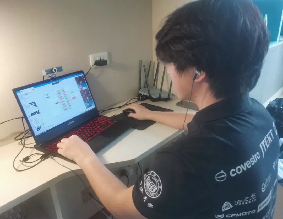 在过去的21赛季中,受新冠疫情影响,车队日常工作开展遇到了前所未有的困难,线下比赛也遗憾取消。在赛事组委会和各车队的共同努力下,各项比赛于2022年5月至6月以线上形式完成。受限于上海严峻的疫情形势,车队线上参赛全程在封控期内完成。虽然病毒将我们困顿于一屋之内,但空间的阻隔并未钳住队员们思维的交流。利用线上会议室,我们紧锣密鼓地开展起线上备赛:从安排答辩人员到校订答辩内容、从模拟答辩流程到群策答辩战术、从统一答辩着装到统一答辩背景,全员全情的投入,为比赛做好了充分的准备。经过多轮模拟答辩和多次老队员指导,参赛队员们已然胸有成竹、自信满满。比赛现场,队员们沉着应对、从容对答,全方位地介绍我们精心设计的赛车、简洁明了地回答评委们的问题。队员间默契的配合与问答中深入地讲述获得了专家评委们的一致认可。