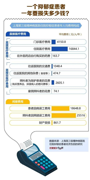 不仅如此,抑郁症还给患者和家庭造成了不小的经济负担。