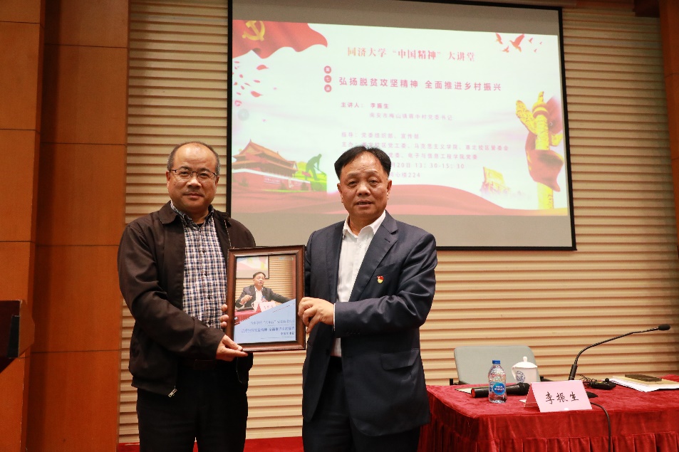 最后,嘉定校区党工委覃文忠书记为李振兴书记赠送了纪念相册,覃书记表示弘扬脱贫攻坚、乡村振兴故事生动深刻,引人入胜,发人深省,李书记对于脱贫攻坚精神的透彻诠释,激励所有党员自觉继承革命传统,传承红色经验,迈进新征程,奋进新时代。