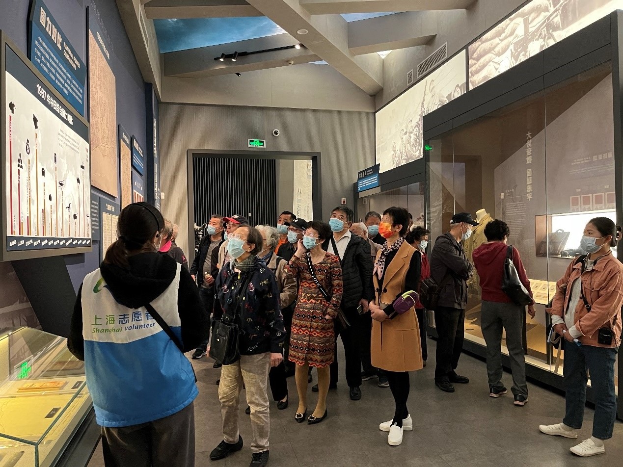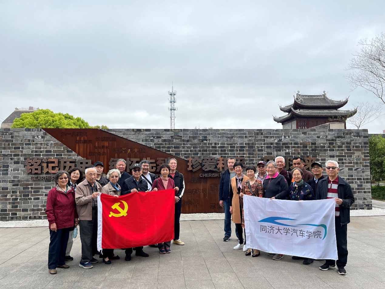 领导的大力支持下组织退休老师与4月20日前往金山卫抗战遗址纪念园和枫泾古镇游玩。
