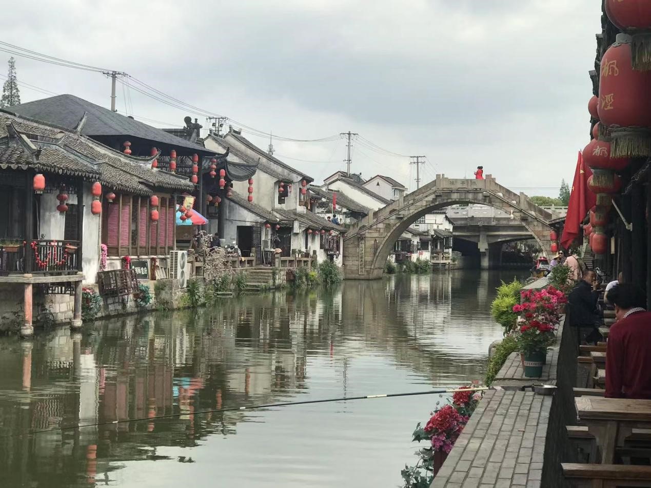 吃过午饭,老师们来到了枫泾古镇,它隶属于上海市金山区,于上海市西南,与沪浙五区县交界,是上海通往西南各省的最重要的“西南门户”。 枫泾镇是中国历史文化名镇,亦为新沪上八景之一,历史上因地处吴越交汇之处,素有吴越名镇之称;枫泾为典型的江南水乡古镇。老师们感受着小桥流水人家,古镇春风猪蹄。欢笑着、愉悦着、收获着~~