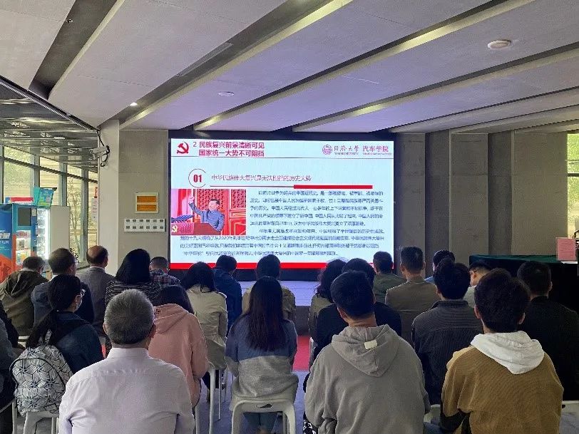 本次活动分为党史学习分享、众:UX座舱分享两大部分。学生代表结合自身实际,通过《论国家统一与民族复兴》分享了国家统一与民族复兴的关系,民族复兴前景和国家统一大势所趋,并对广大青年学子寄语。最后基于大众UX座舱,对智能座舱进行了详细解读。