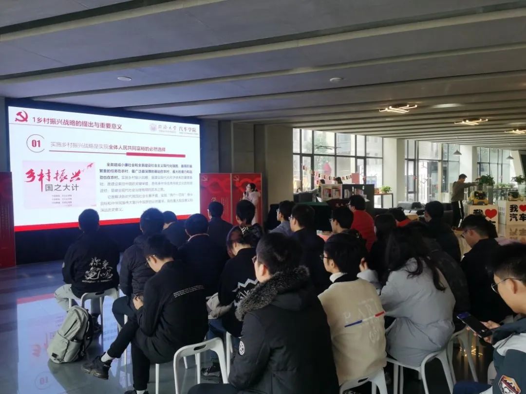 本次活动的主题为“全面推进乡村振兴、加快农业农村现代化”,本科生第二党支部的同学结合党的十九大报告和真实案例,分享了新时代乡村振兴的重大意义以及党员应当发挥的引领作用;同时立足于专业,分享了当下热潮——车路协同领域中的基础模型,车辆跟驰模型。结合未来智能网联环境的发展方向,分享了车辆跟驰模型在汽车领域的前景。