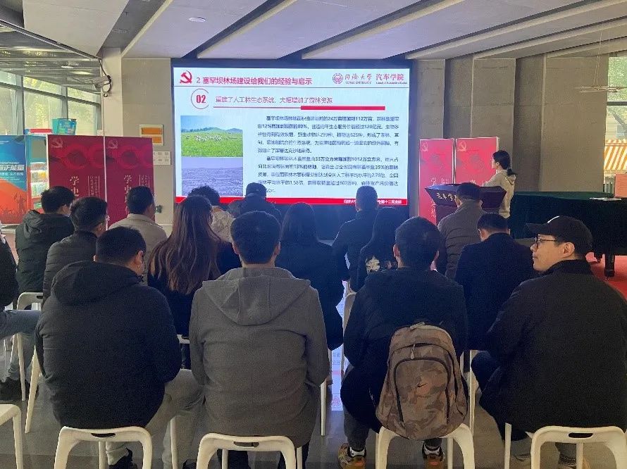 活动最后,教工第二党支部支部书记杨代军老师也分享了自己感想。他说,今天又重新学习了一遍塞罕坝精神,又让人耳目一新。在以后的政治理论学习中,也应当跟专业知识一样,温故而知新。让我们深刻认识到我们理论知识的不足,特别是新生党员同志更应该加强党史学习,让我们更加深刻的了解我们的党,坚定我们党员的党性。