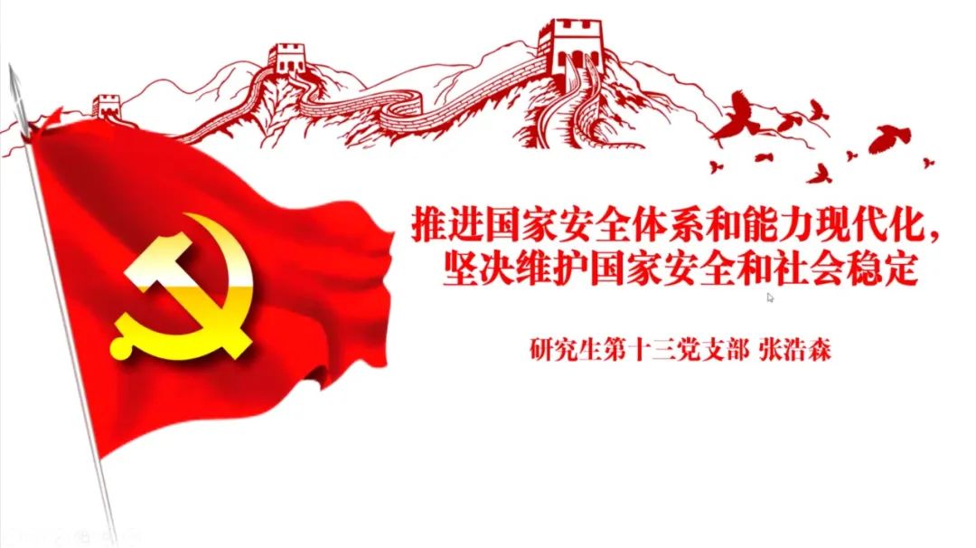 首先,由研究生第十三党支部张浩森同志带来主题为“推进国家安全体系和能力现代化,坚决维护国家安全和社会稳定”的理论知识分享。分享重点学习了党的二十大报告中对国家安全观与国家安全体系的论述,阐释了关于国家安全的新观点、新论断、新思想。本次分享带领大家认识了充分推进国家安全体系和能力现代化的重大意义,鼓励广大汽车青年要积极参与到国家安全的事业中,为实现中华民族伟大复兴保驾护航。