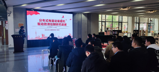 研究生第一党支部严周栋同学带来题目为“分布式电驱动装载机驱动防滑控制研究进展”的专业分享。他详细介绍了防滑问题的解决思路、机理分析和控制、信号处理、仿真以及实车验证,指出该方案控制简单,计算量小,不需要车速信号,可以充分地发挥路面附着系数,且受外界工况变化的影响较小。他最后对该方案进行了展望:(1)可与相对滑转量控制综合,应用于装载机驱动防滑;(2)可用于四驱车车速信号故障时的冗余控制方式。