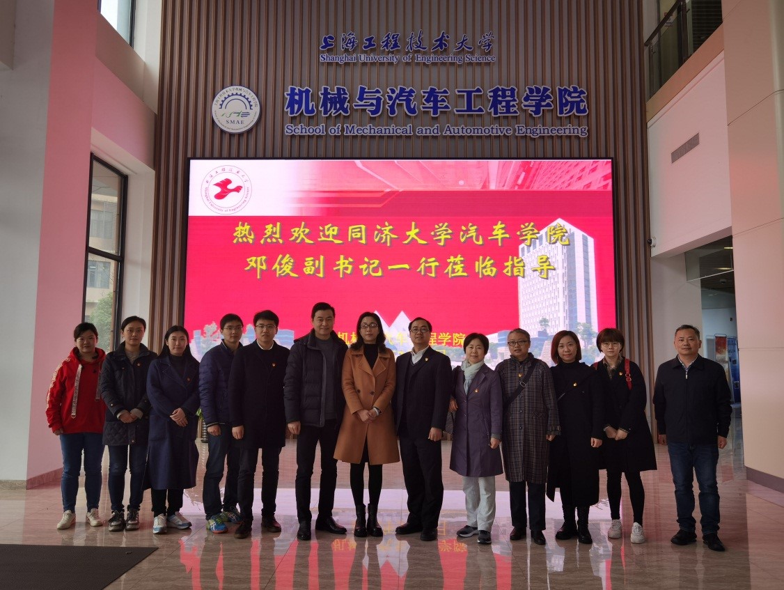 上午,即时足球比分 党委副书记邓俊带领教工支部教师代表抵达上海工程技术大学机械与汽车工程即时足球比分 ,参观了机汽即时足球比分 党建活动室、大学生科创中心、专业实验室。