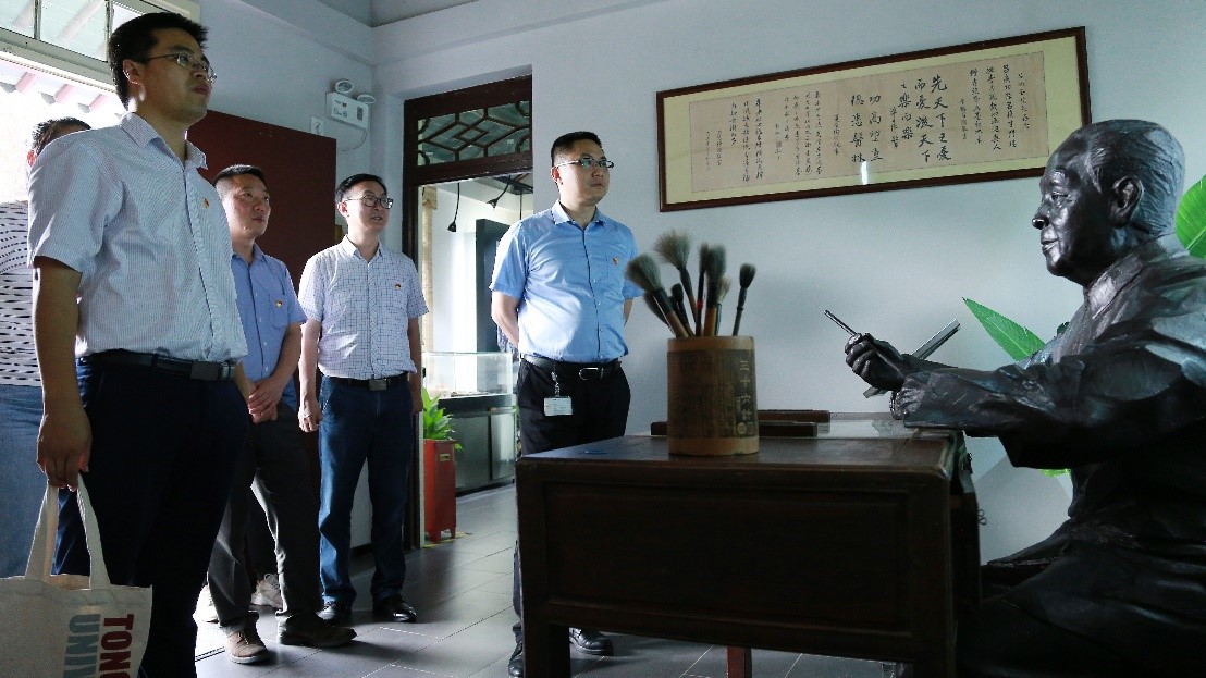 参加活动的全体党员怀着崇敬的心情在纪念馆的塑像前合影留念。大家举着鲜红的党旗,带着闪闪发光的党徽,表示永远跟党走,党时刻在我心中。同志们认真参观了嘉定外冈游击队纪念馆的三个展室和吕炳奎同志旧居,通过各种文物、图片和历史资料的介绍,深入地学习了当年外冈游击队在中国共产党的领导下,积极抗日、英勇战斗的光辉事迹。