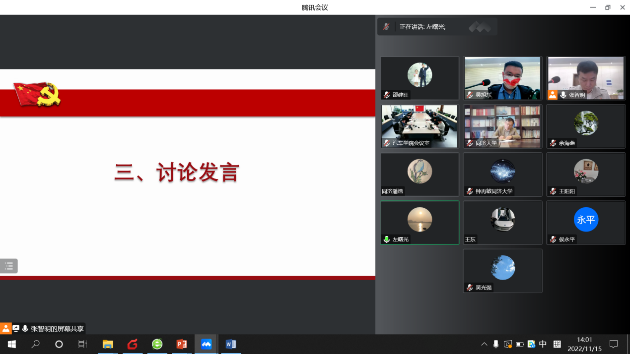 党委副书记、院长张立军,教工第一党支部16名党员出席会议。会议采用线上、线下结合的形式,由教工第一党支部书记张智明主持。