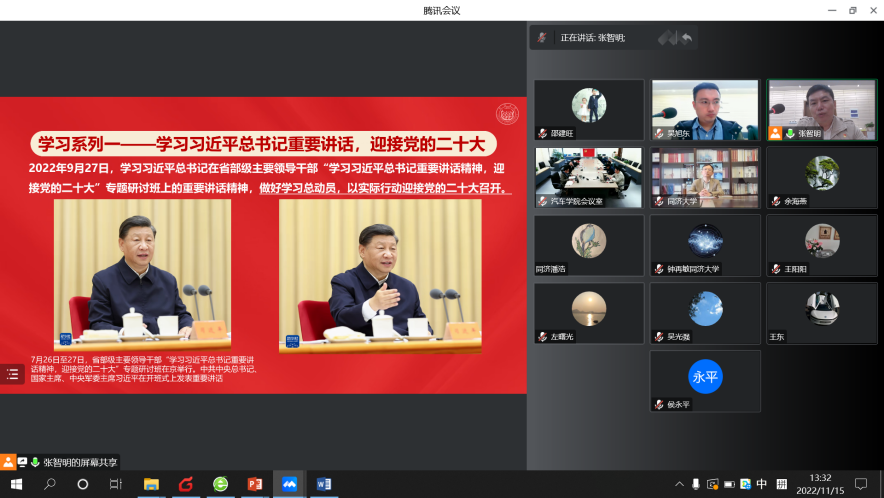 在讨论环节,支部党员结合自身教学科研工作逐一分享了学习贯彻二十大精神的体会。