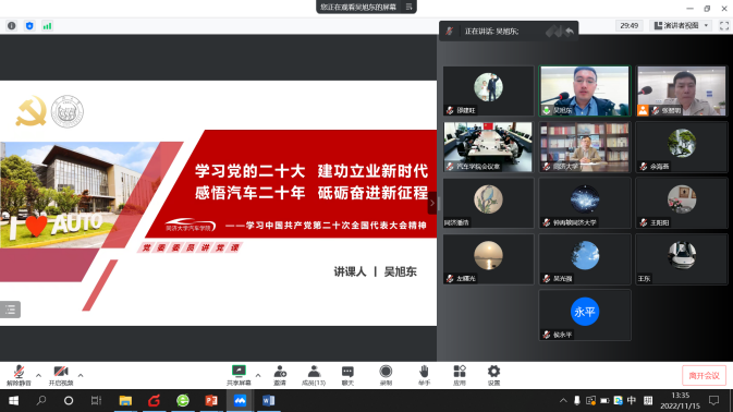 党委委员、副院长吴旭东以“学习党的二十大,建功立业新时代,感悟汽车二十年,砥砺奋进新征程”为主题进行了党课宣讲,对照二十大报告中“实施科教兴国战略,强化现代化建设人才支撑”的论述,结合即时足球比分