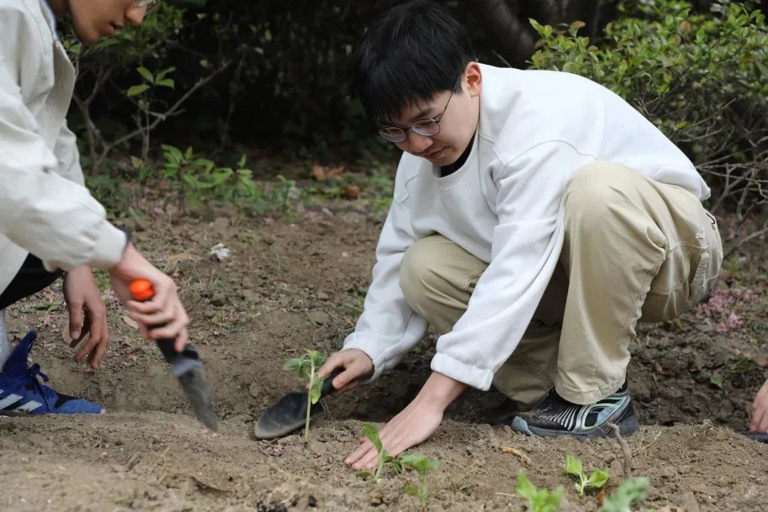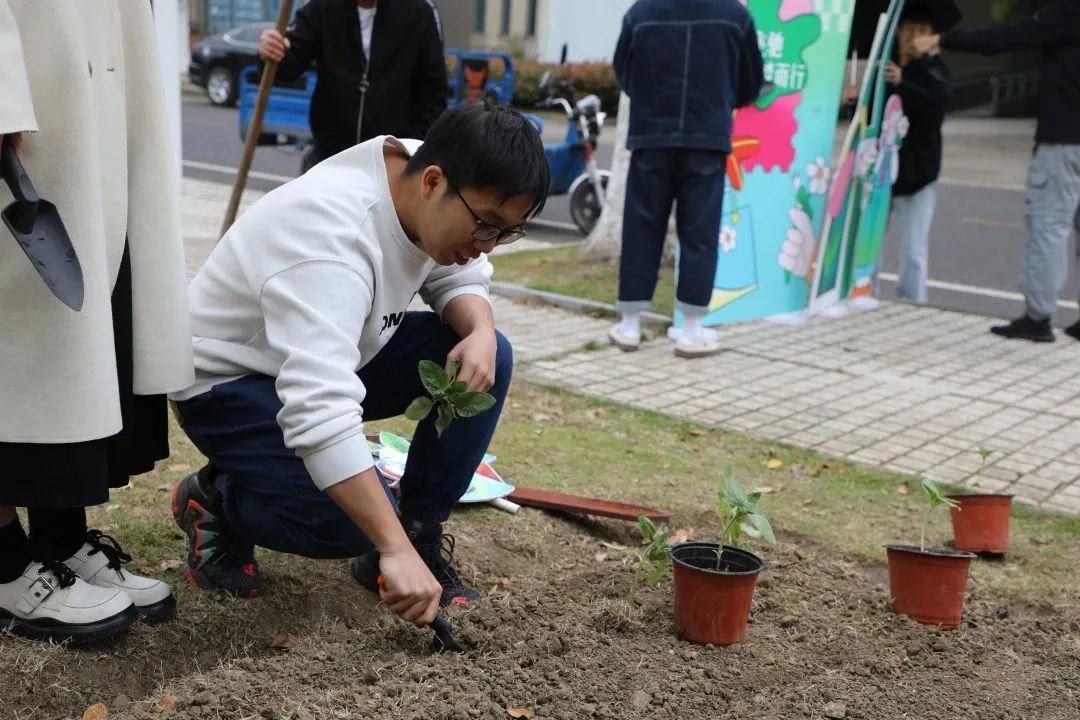最后,同学们前往实践基地进行“向阳飞驰 驭梦而行”种植实践活动,上海同济物业管理有限公司嘉定综合部洪敬峰经理进行了现场指导。同学们种下向日葵、上海青和其他花卉,并将在未来两月中持续开展维护工作。