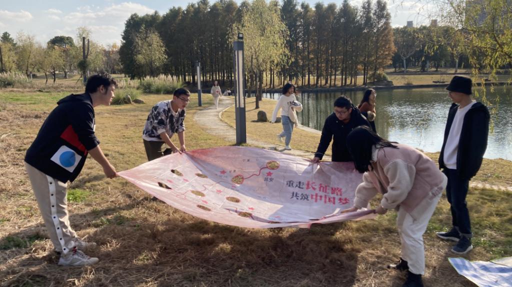 “1+4网格化朋辈教育素质拓展”活动于12月5日在嘉定天鹅湖举办,围绕学业帮扶与党史学习,举办五个素质拓展游戏,分别是绿野谜题、重走长征路、两人三足、红歌猜歌名以及益智动手游戏。参加活动的同学以组队的形式进行比赛。