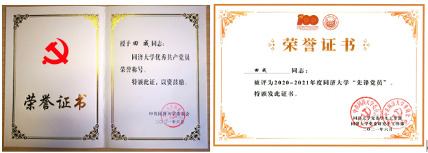 “行远自迩,笃行不怠”,只有从小事做起,坚持不懈,才能一步一步接近理想。本科与硕士阶段,他在努力学习专业基础知识的同时,还积极为师生服务,发挥党员的先锋模范作用,硕士阶段担任了支部书记、校支书联席会代表等多项职务。本科期间曾获北京市优秀毕业生、多项奖学金及荣誉称号,硕士期间获硕士研究生国家奖学金、同济大学校优秀学生干部等荣誉。