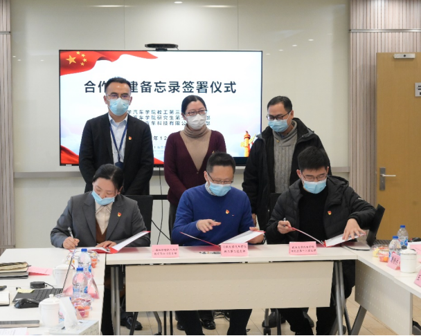 研究生第十八党支部和上海淞泓智能汽车科技有限公司党支部签署了《合作共建备忘录》。三个党支部表示,要坚定不移坚持中国共产党领导,以党建引领科技创新,在支部建设、“三会一课”、政治理论学习等方面开展常态化合作,针对智能网联汽车核心技术研发、测试与评价、大数据、标准法规制定、产业政策研究、人才培养、学生创新活动、实习与就业等工作开展特色化合作。