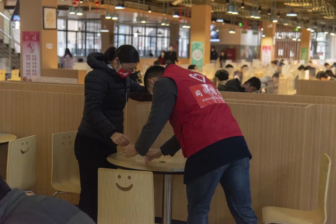 已有294名学生党员先后参与到嘉定校区准封闭管理期间的志愿者队伍中,87名学生党员承担起3月21日嘉定校区全员核酸检测的现场组织工作,让鲜红的党旗在防疫一线高高飘扬,志愿者“大白”忙碌的身影书写了时代青年的责任与担当。