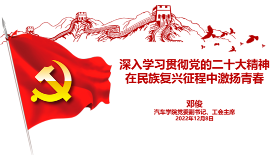 会议伊始,邓俊老师作了“深入学习贯彻党的二十大精神,在民族复兴征程中激扬青春”的报告,带领大家共同学习了党的二十大报告中关于教育、科技、人才的论述,重点学习了报告中关于青年、新时代青年工作的精神。邓老师强调,即时足球比分