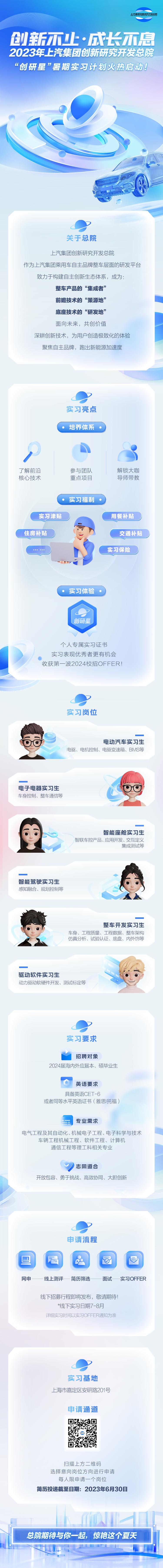 暑期实习丨2023年上汽集团创新研究开发总院“创研星”暑期实习计划火热启动!