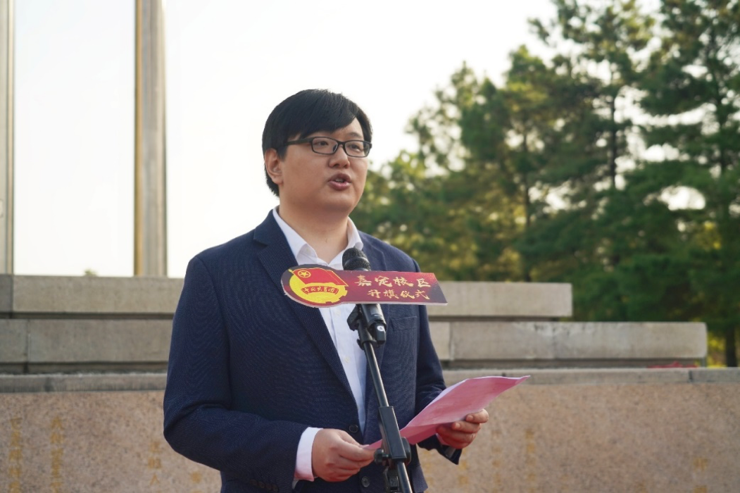 蔡黎明老师作为教师代表上台讲话。他跟在场学生分享了自己对于“科创报国”的几点感悟。蔡老师寄语学生们“科创报国,撸起袖子加油干”,为新时代中国梦的实现添砖加瓦。“树高千尺,深在沃土,纵然跃过七十一载春秋,也远非高枕耽乐之时,更觉重任在肩”。