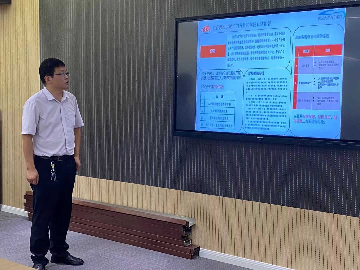 接着,汽车工程、车用能源与动力、汽车电子与智能三大教研室各自汇报了先前通过教研室层面所进行的全员讨论情况汇总,主要围绕人才培养理念与办学目标、人才培养模式改革、学科专业动态调整以及如何成为一名优秀的大学教师四个主题展开。