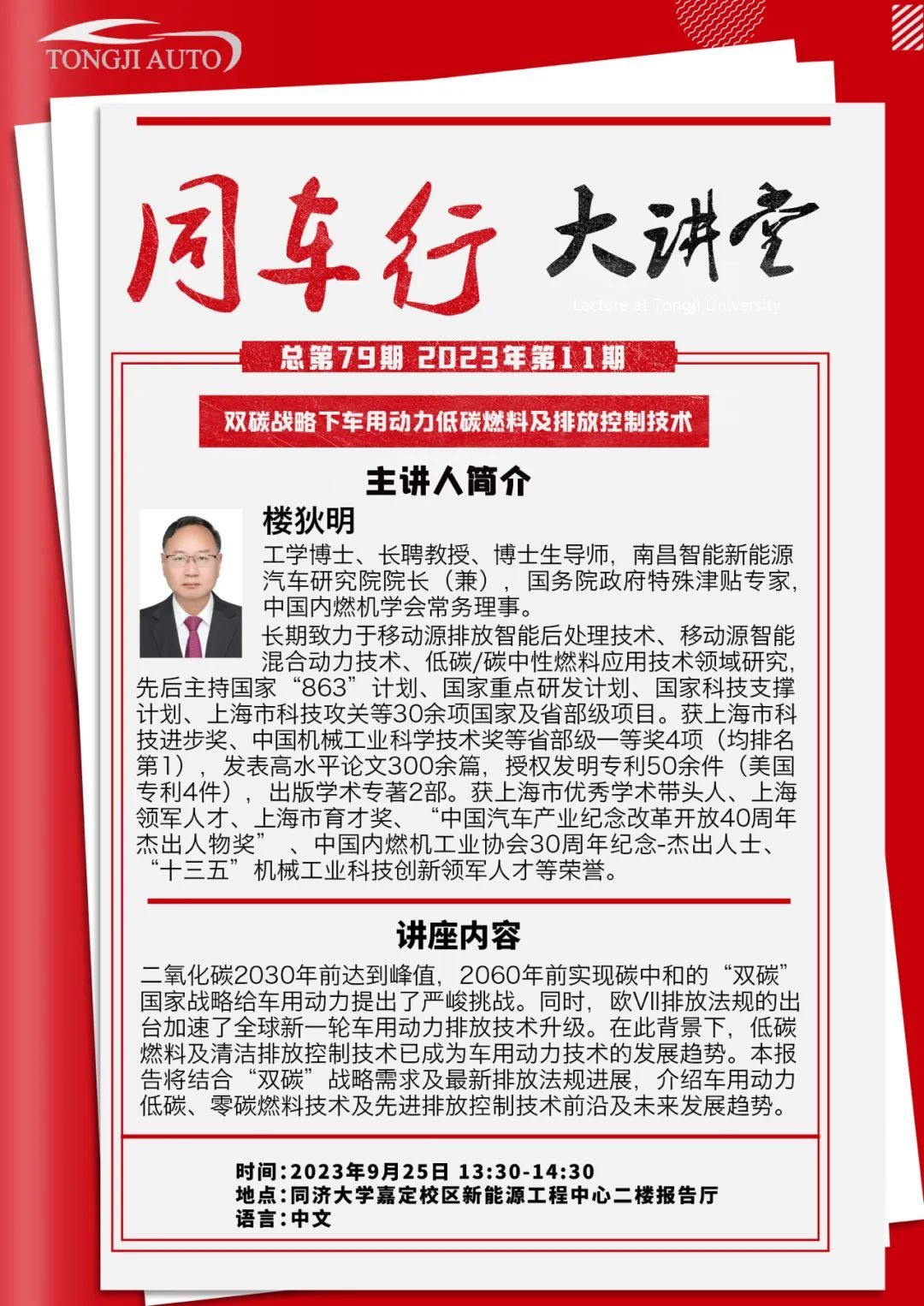 “同车行”大讲堂第七十九期 | 双碳战略下车用动力低碳燃料及排放控制技术