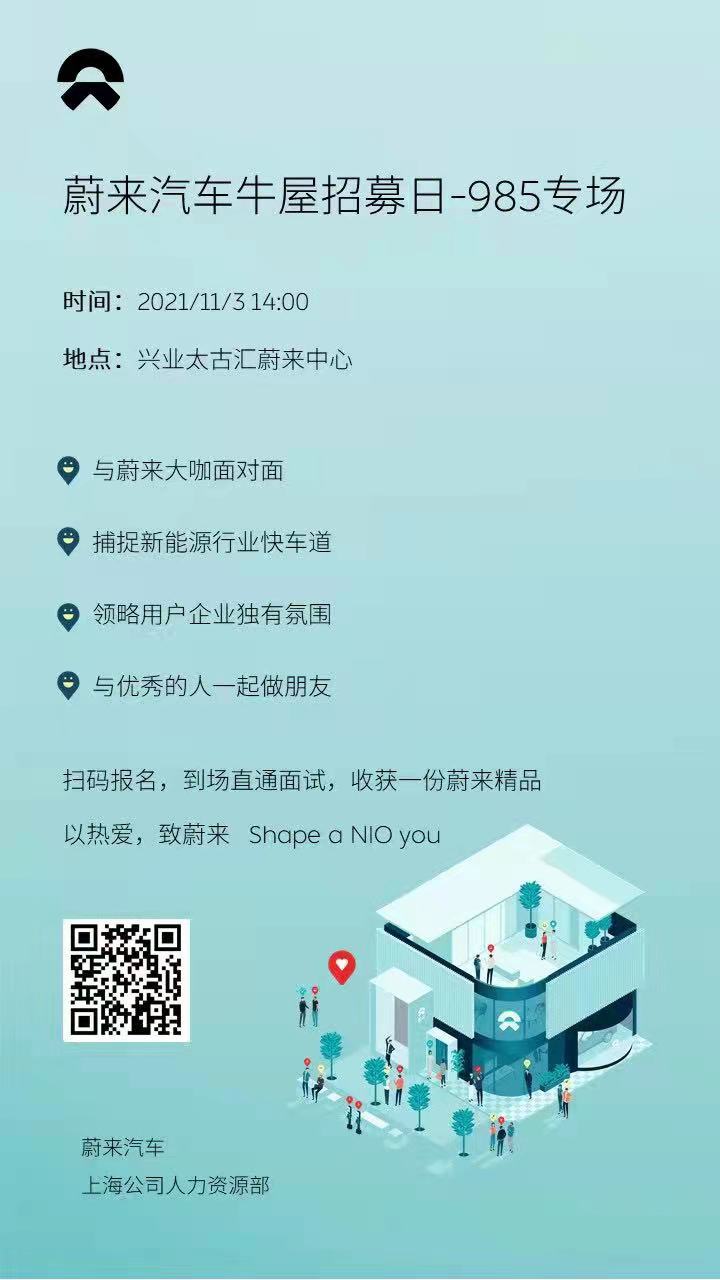 蔚来汽车牛屋招聘日-985专场