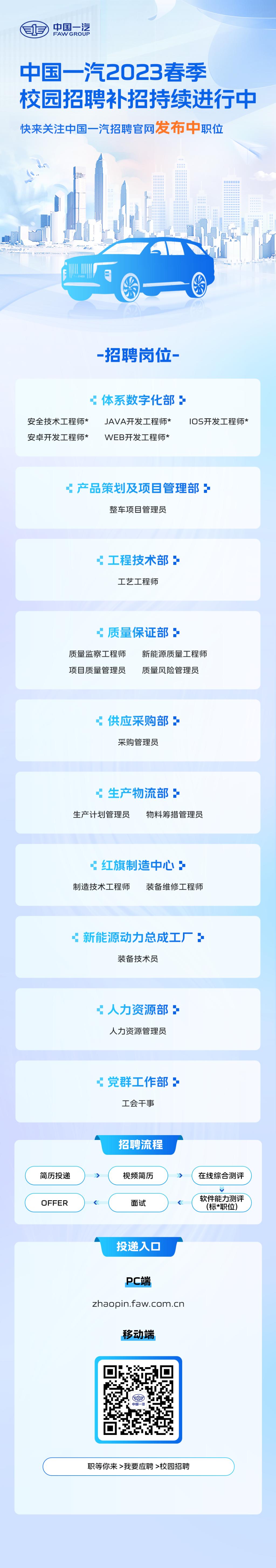 全网搜索并关注【中国一汽招聘】获取更多校招信息