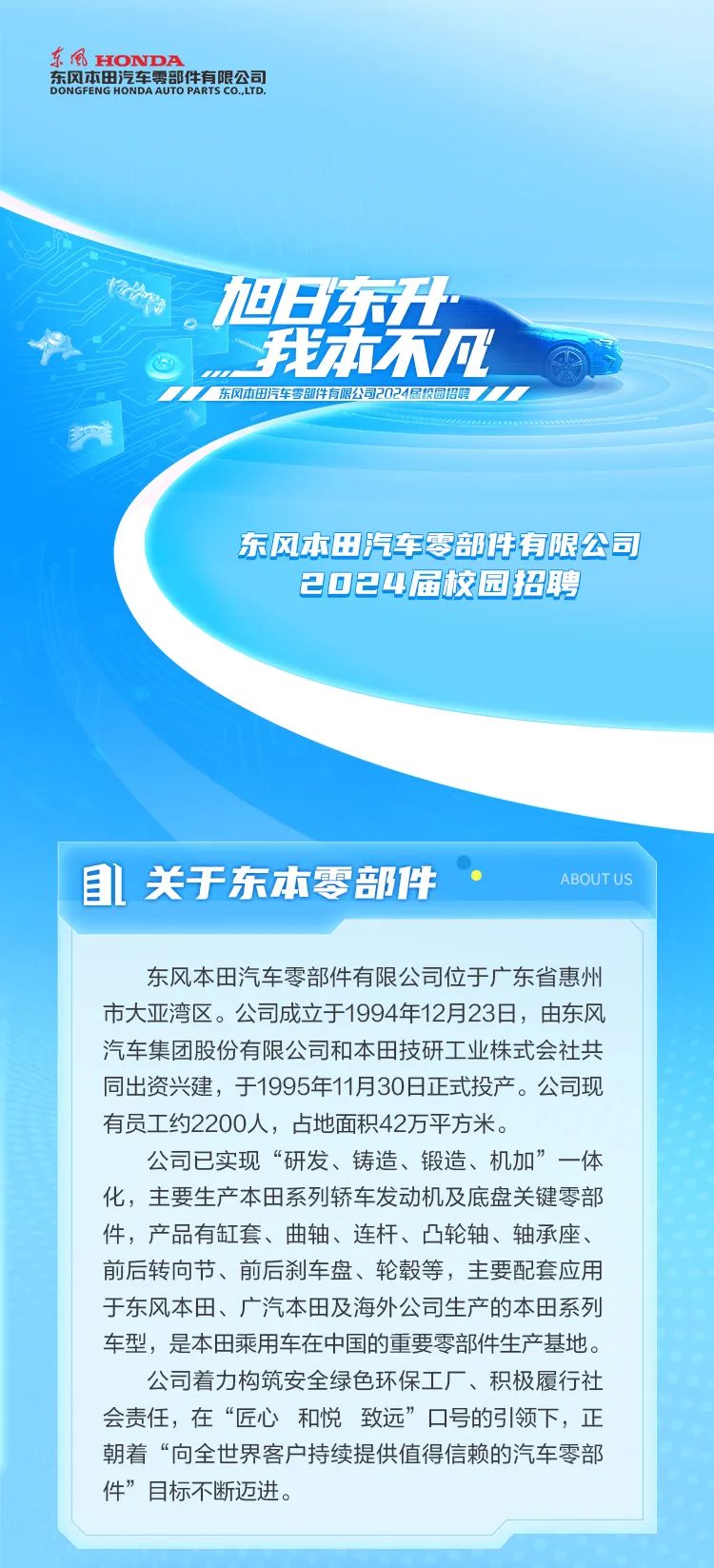 招聘 | 东风本田汽车零部件有限公司2024届校园招聘
